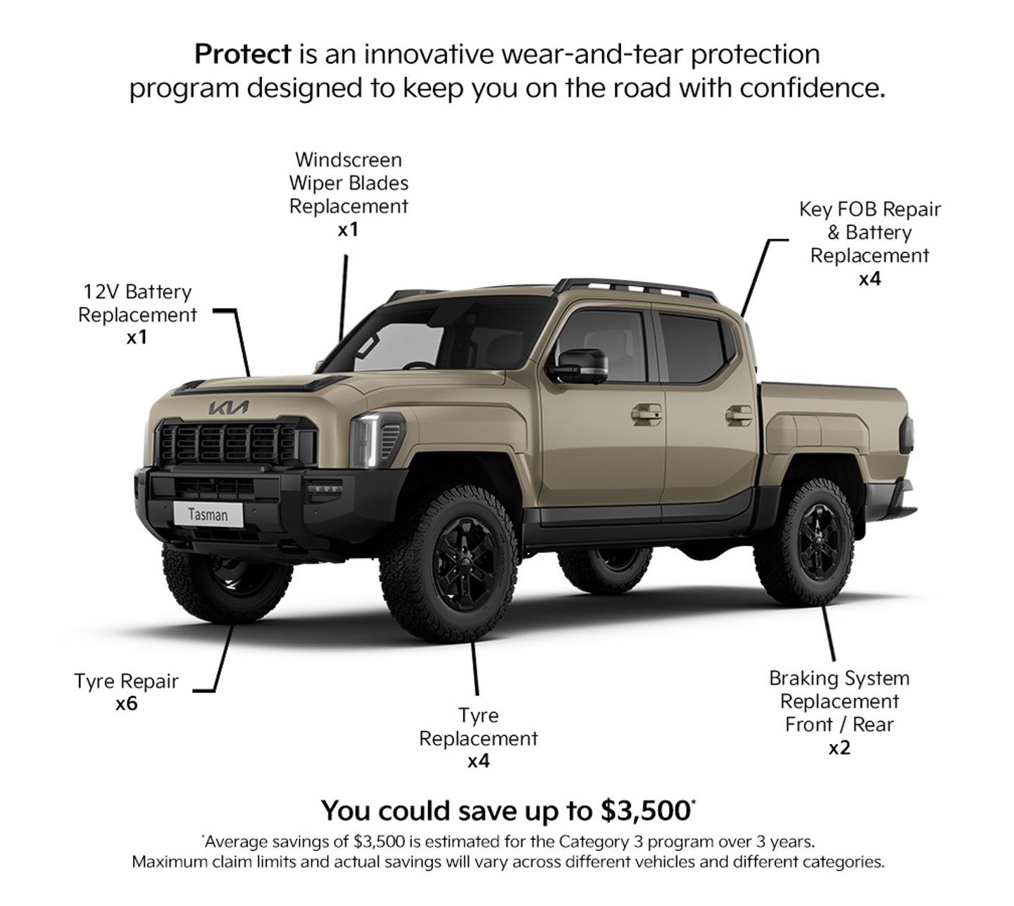 The following limits apply to the Work Orders depending on whether your motor vehicle is a category 1, 2, 3 or 4 vehicle. Any work order beyond the maximum allowed under the 3 Year Protect Plan can be organised for you, but you will be required to pay the cost of these directly to the service centre (current as 1st July 2025).