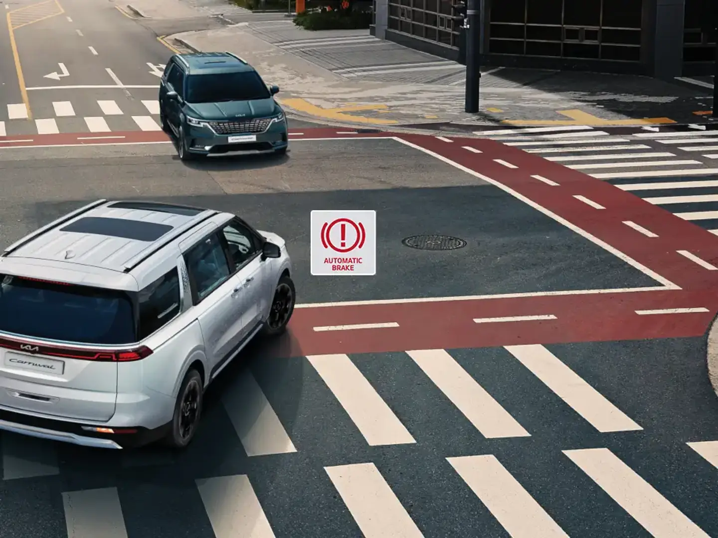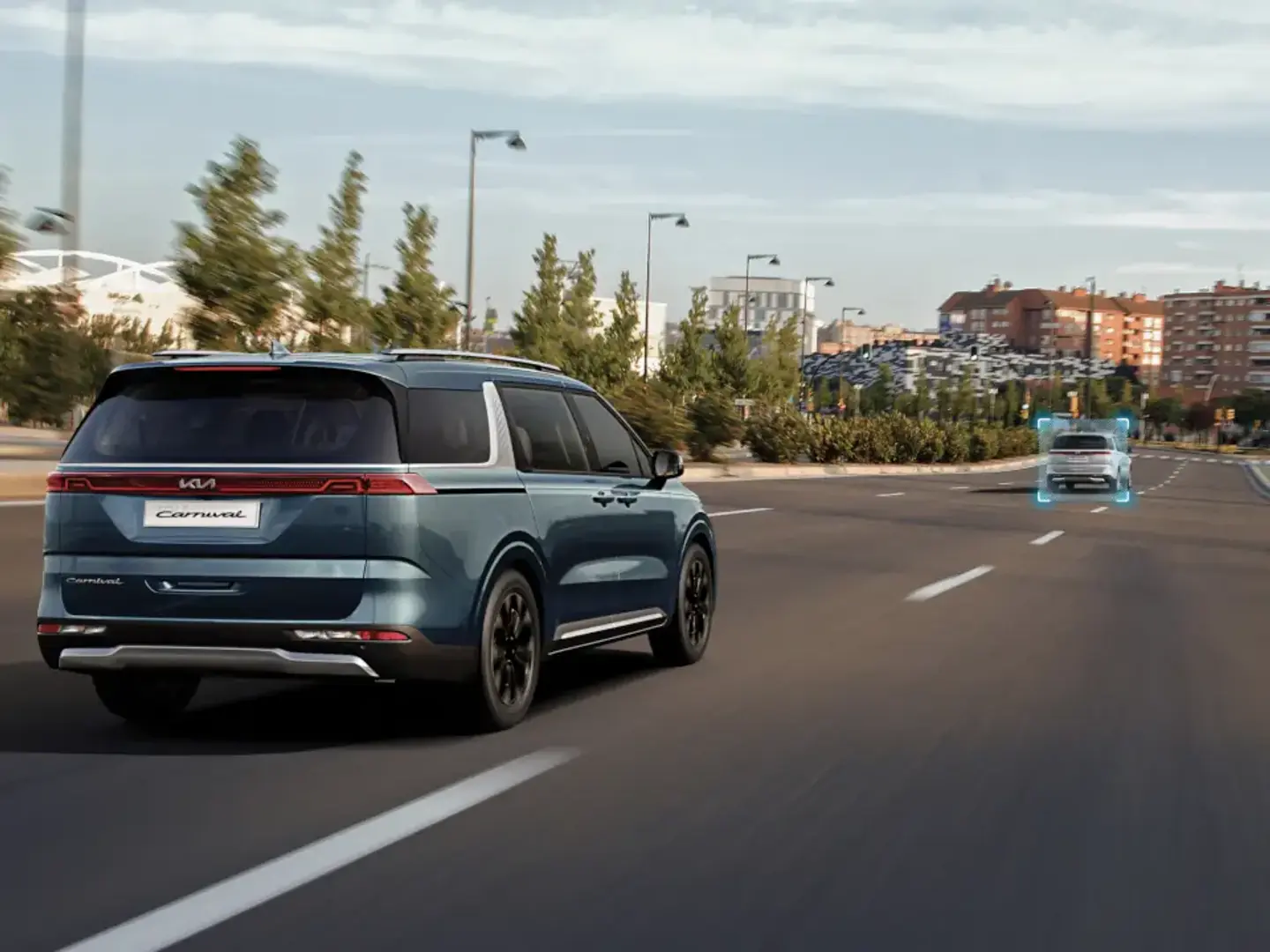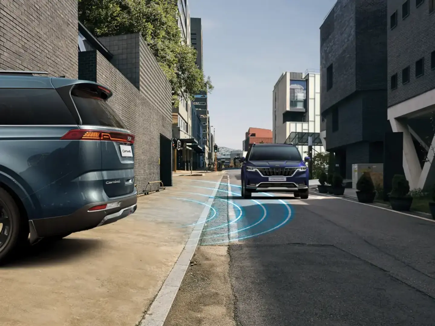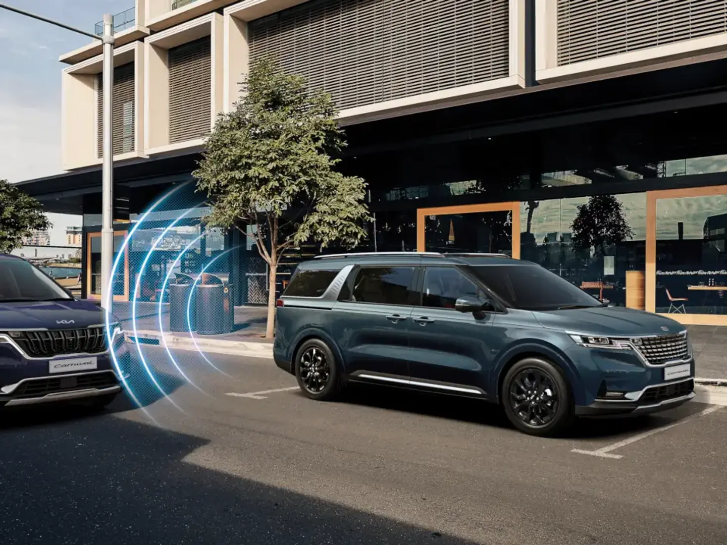 Rear Cross Traffic Alert (RCTA) warns the driver with audio & visual alerts when detecting vehicles approaching from either side of the Carnival when reversing.