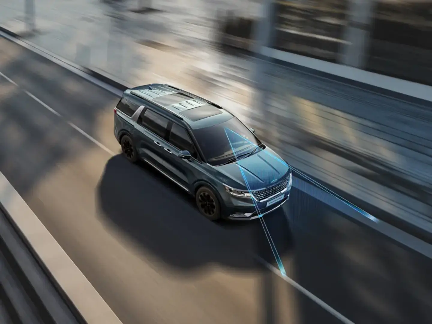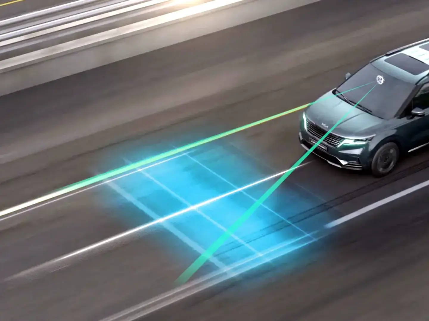Lane Following Assist (LFA) identifies the Carnival's current lane and the lane boundaries using its front view camera and automatically assists with steering the vehicle to keep it in the middle of the lane whenever it detects that the vehicle is unintentionally veering out of the current lane.