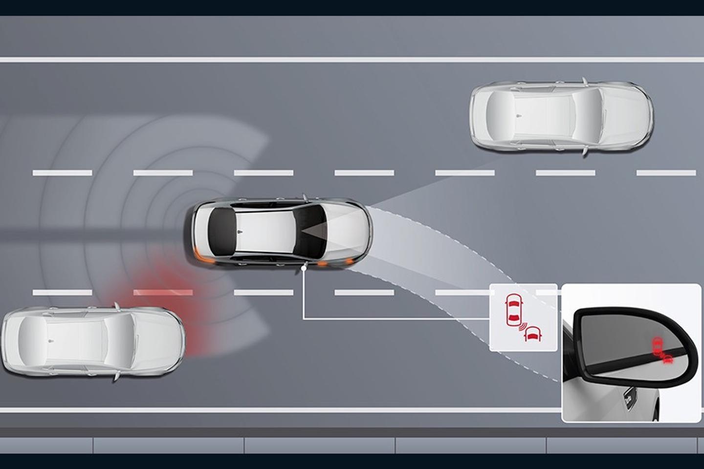 Blind Spot Detection available on GT, Sport+, Sport with Safety Pack & S with Safety Pack.