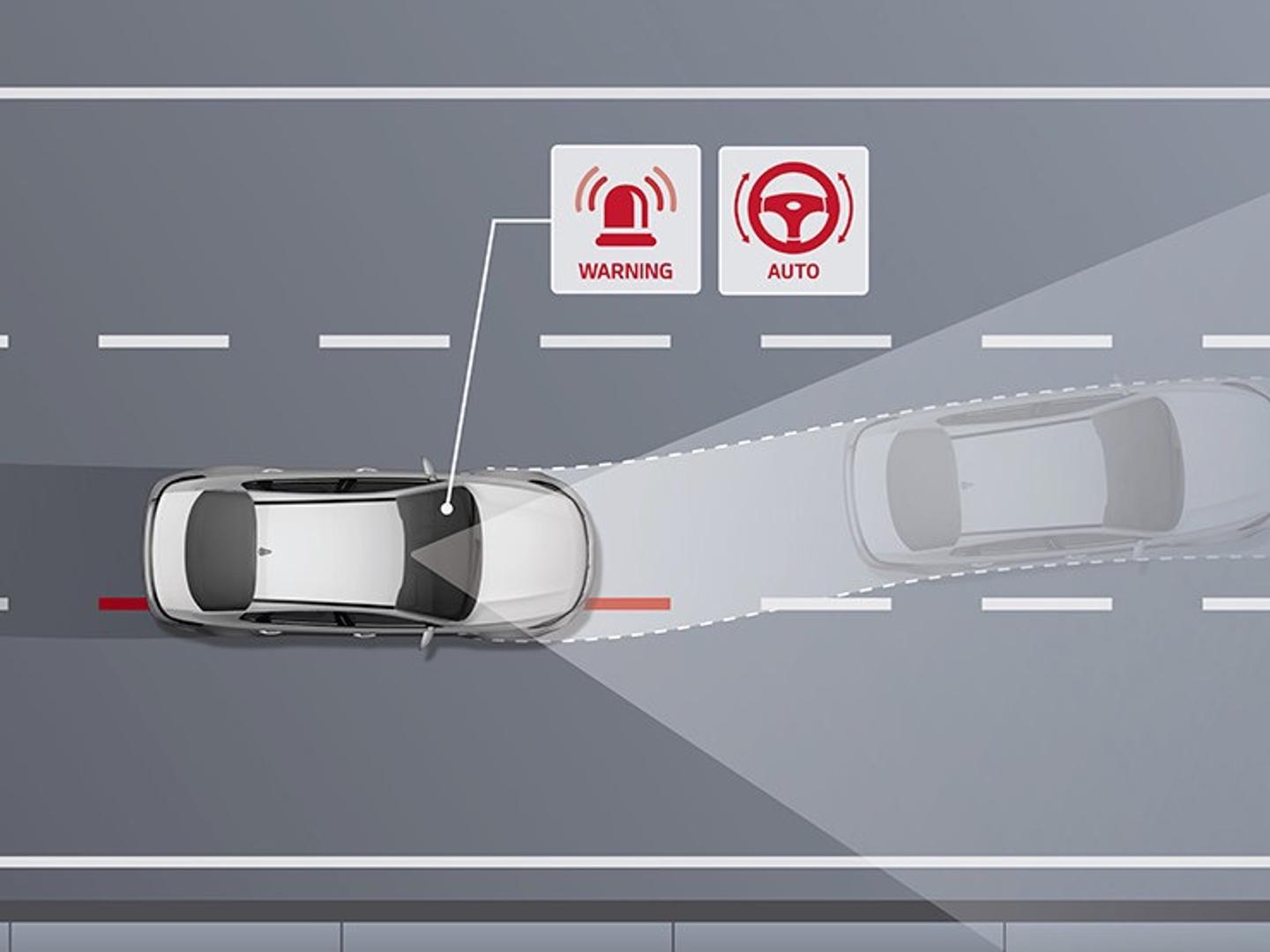 Lead Vehicle Departure also notifies you with an audio-visual alert when the vehicle in front has moved while stopped at a traffic light stop.