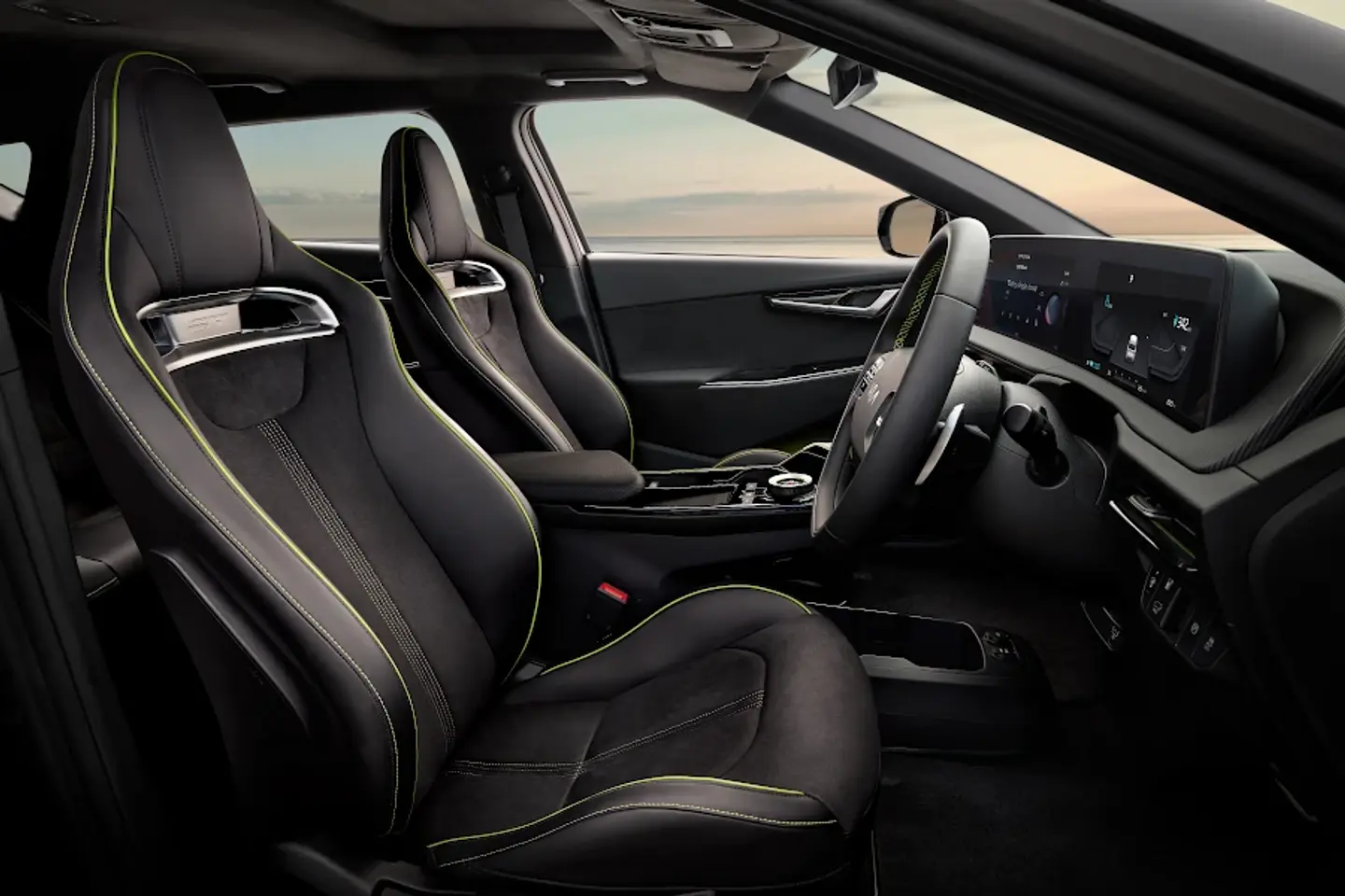 Racing inspired GT bucket style seats with GT emobossed logo and neon green highlights feature extensive lateral and back support.