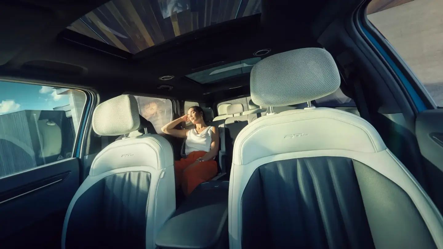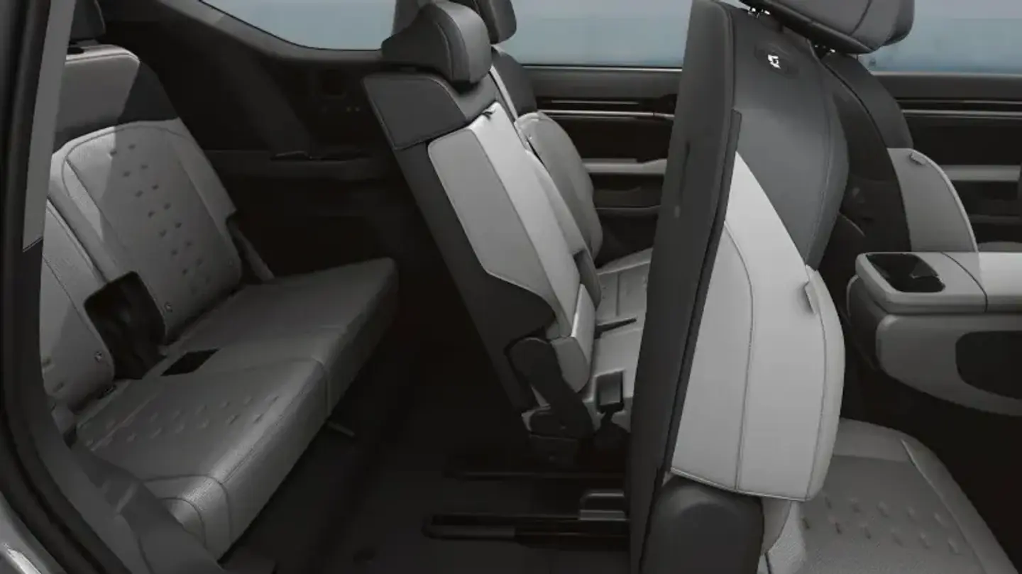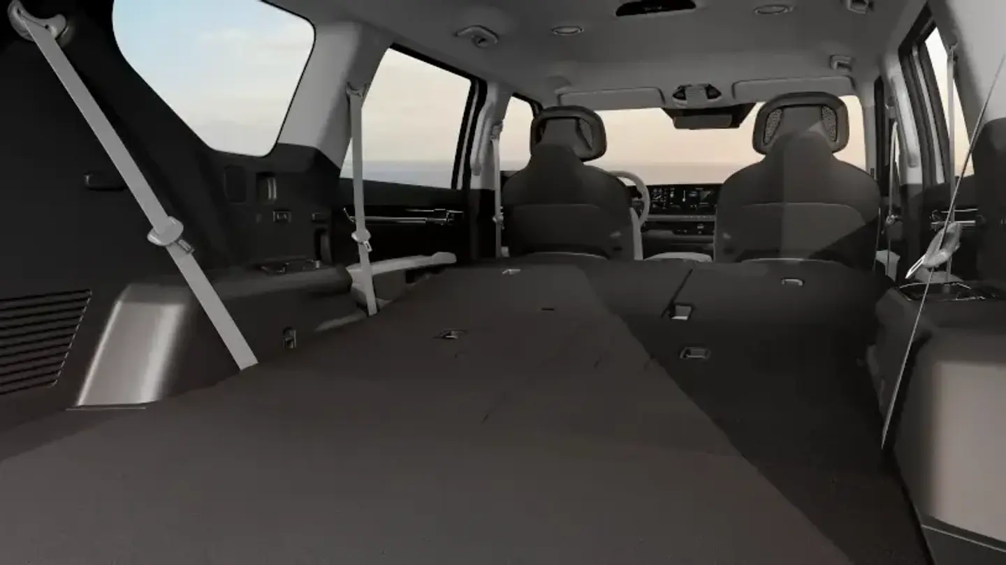 Spacious and serene, the 7-seat EV9 provides plentiful leg, head & shoulder room for passengers for a relaxed journey. Complete with powered leg rests, the Premium relaxation front seats recline to support your body in lavish comfort.