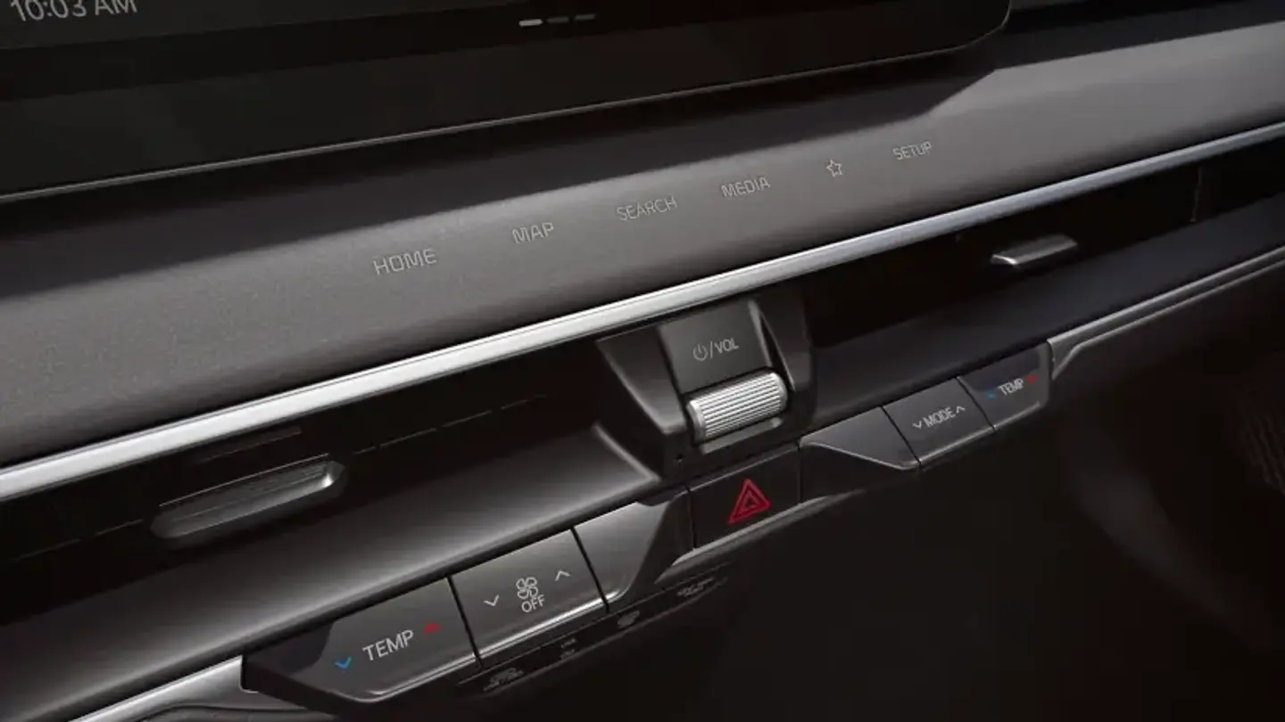 A hidden infotainment control panel with haptic feedback functionality appears when the vehicle is powered on, reducing dashboard clutter without compromising on tactile feel.