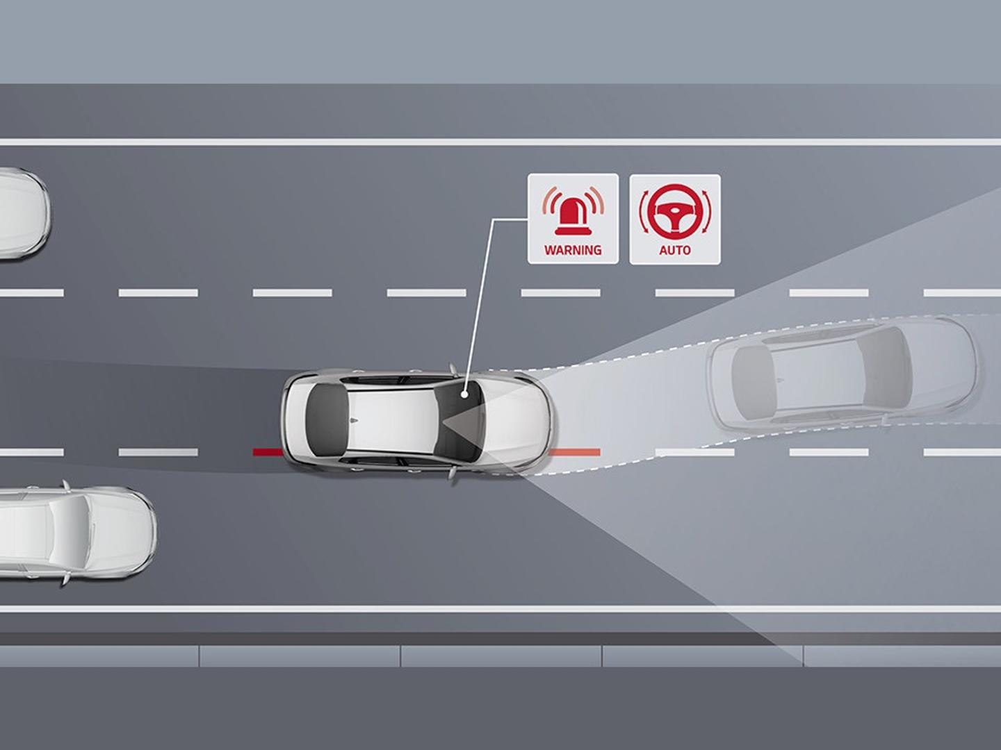 Lane Following Assist helps the vehicle to remain in the centre of the lane by continuously correcting the course of the vehicle.