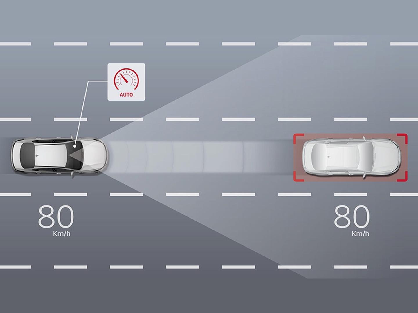 Feel at home on any road with Advanced Smart Cruise Control (ASCC) using radar to maintain a predetermined distance from the vehicle directly ahead, automatically slowing or accelerating your vehicle when appropriate. The ASCC will also come to a complete stop if the vehicle in front stops, and will accelerate if the vehicle in front moves away within 3 seconds.